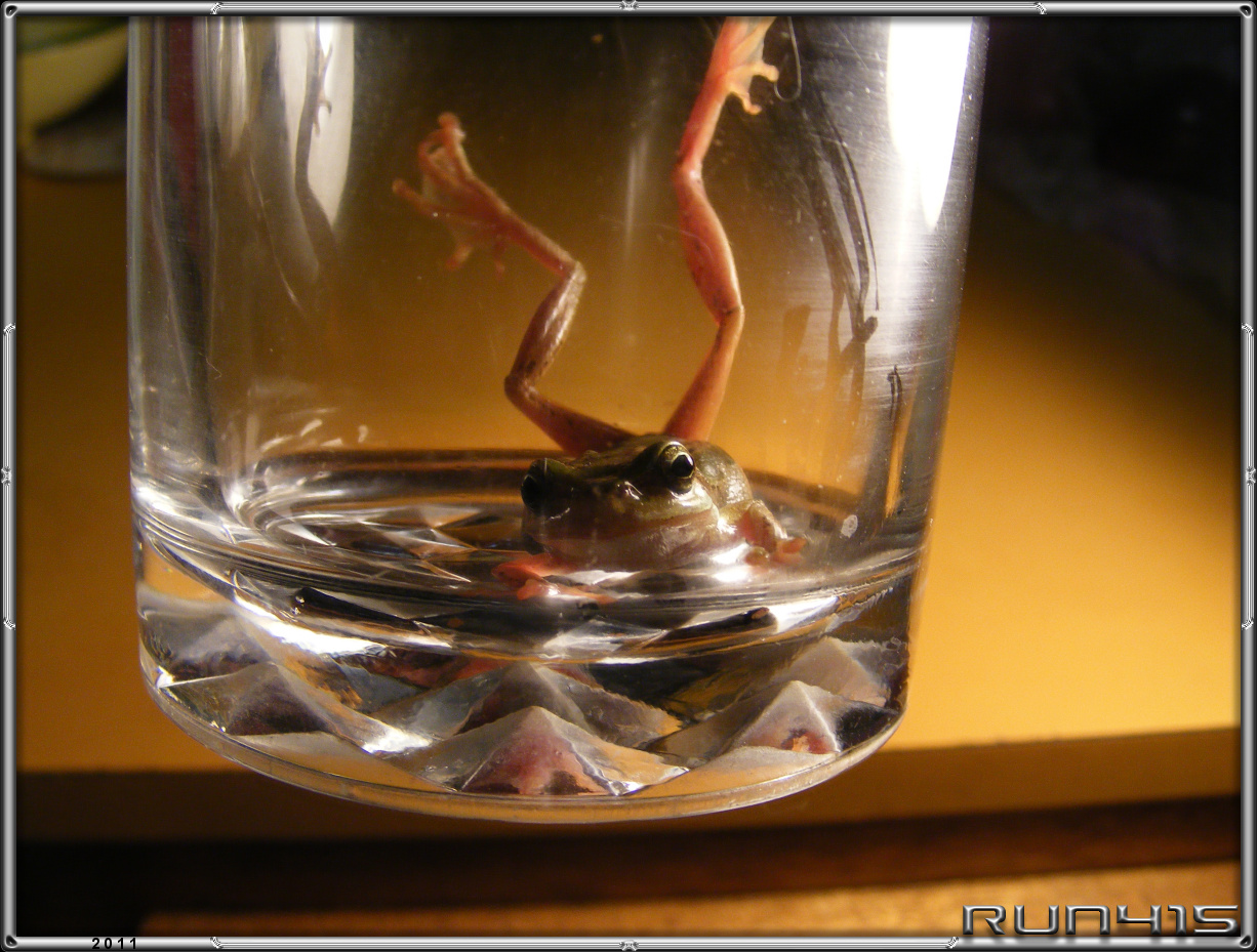 = Froggy In A Glass = Taking indoor shots of frogs is rather difficult! Southern Brown Tree Frog? 1200 x 675 Master = 3264 x 2448